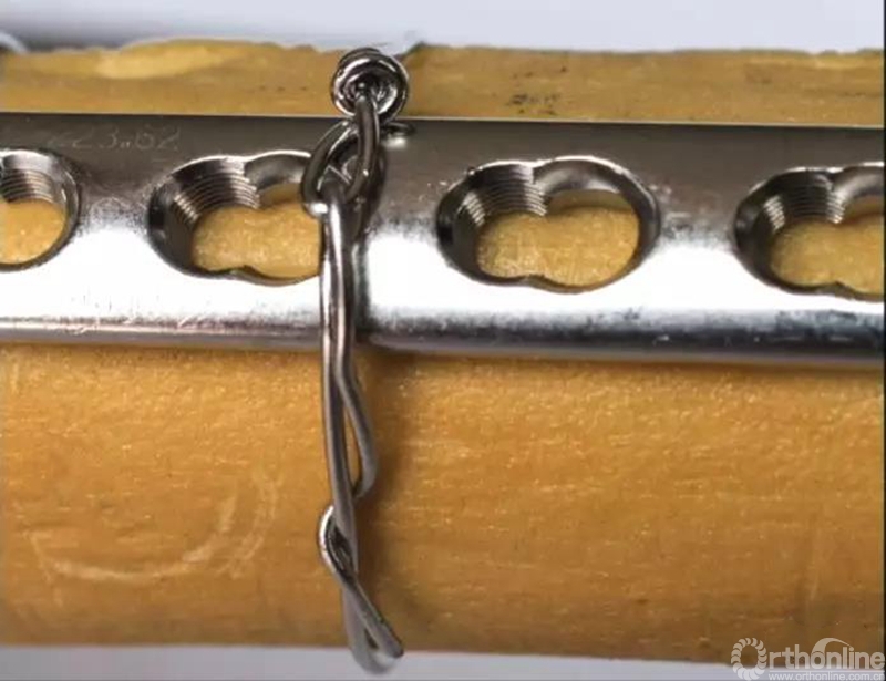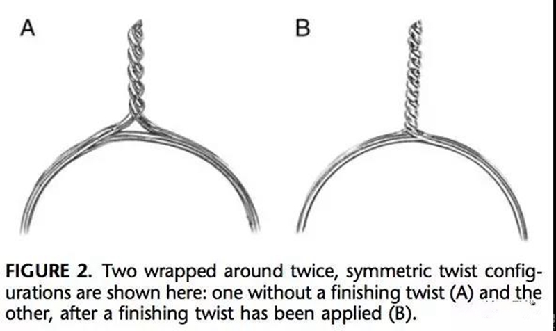 如果扭结已经压在骨面,还要继续转动,就会出现二次扭转,钢丝可能会从扭结基底部扭断。
