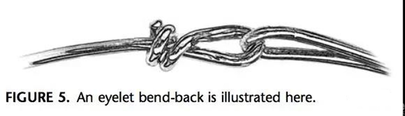 和发夹袢扭结类似,不过是双股钢丝全部穿过环袢,扯紧,尾端扭结,折弯。