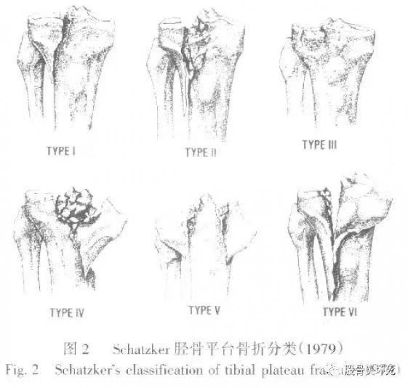 1979年Schatzker提出了胫骨平台骨折分型,是至今使用较多的分型。