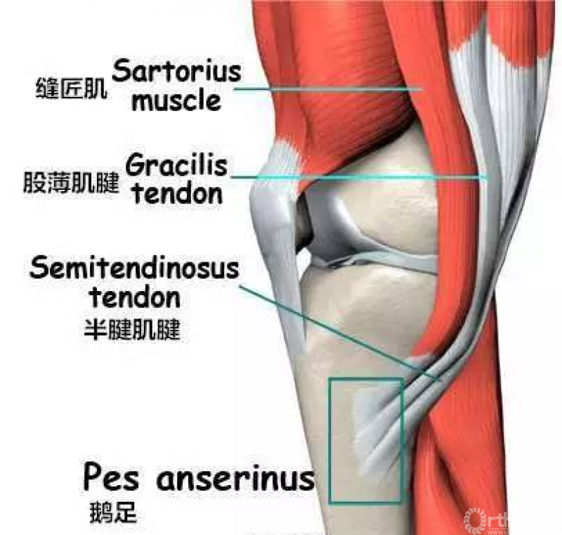 膝关节鹅足结构背侧暴露胫骨近端内侧缘