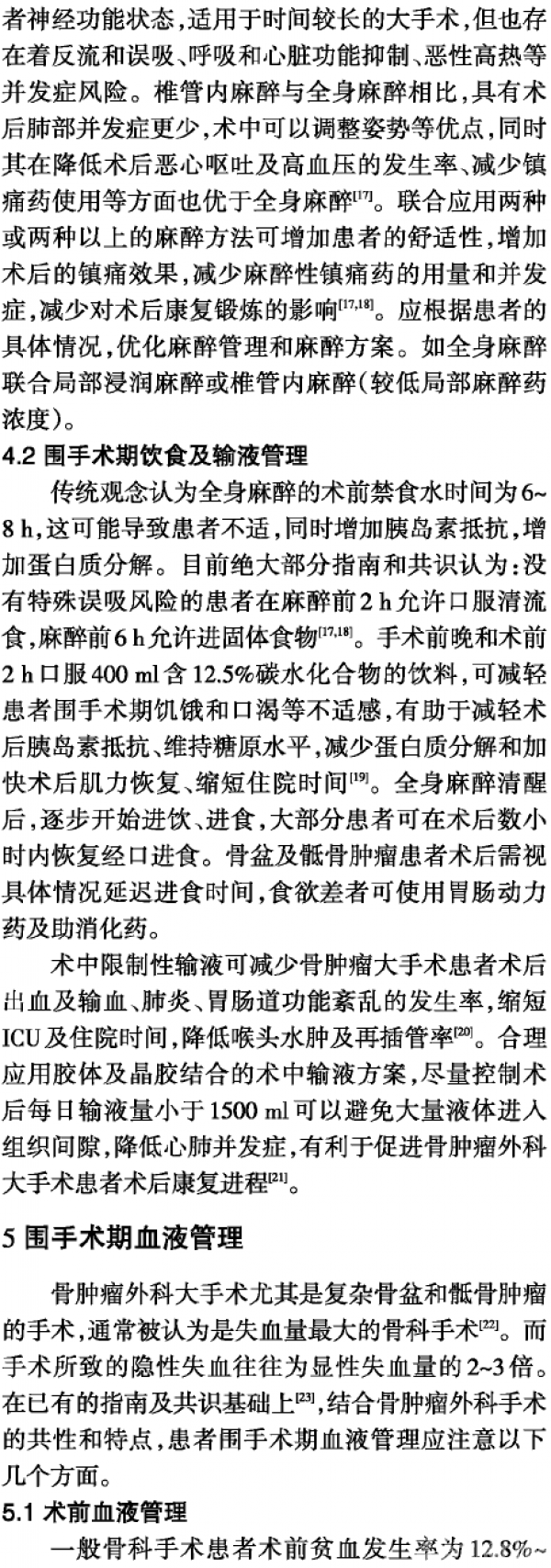通过查阅文献,遵循循证医学原则,经过全国骨肿瘤专家组反复讨论,针对骨肿瘤外科大手术患者的围手术期管理达成了共识,供广大骨肿瘤外科医师在临床工作中参考应用。