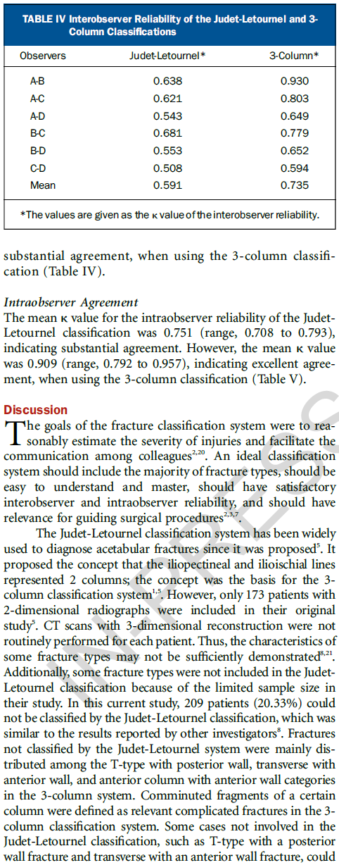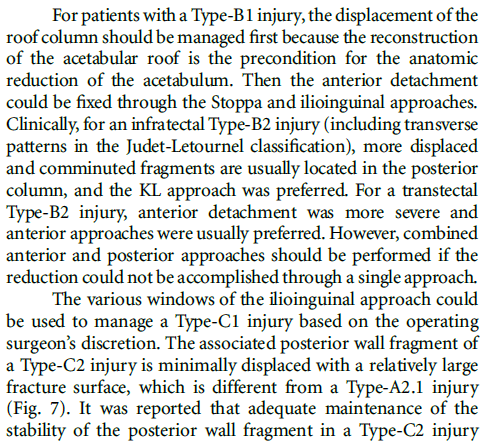 通过两种分型系统对来自七个一级创伤中心的1028例髋臼患者进行对比研究,显示三柱分型具有更高的一致性和可重复性;且基于该分型的手术入路具有很好的规律性,可为骨科同仁手术的选择提供参考。国内外学者一致认为该分型是对传统髋臼骨折分型的颠覆性创新,可能会成为创伤骨科领域程碑式的进展。