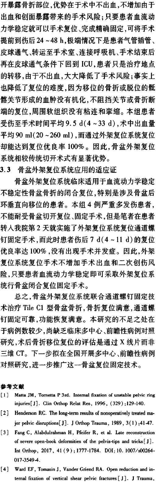 骨盆外架辅助复位联合通道螺钉固定治疗Tile C1型骨盆骨折