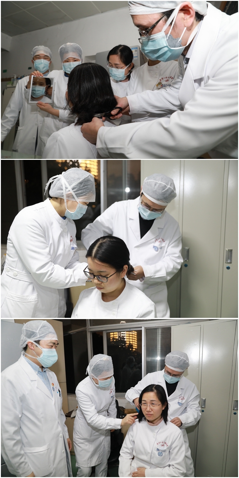 2月5日,武汉大学中南医院关节与运动医学科的护士们剪短秀发上一线。