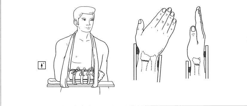 (1)伤肢体位应放置正确、外套纱套或包1~2层棉纸,以免压坏皮肤。