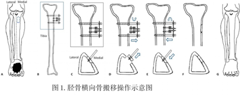为解决上述问题,该团队从2013年开始尝试胫骨横向骨搬移技术在治疗糖尿病足的临床运用,这一方法在糖尿病足治疗在中国内外属首创。团队采用独家改良的微创截骨技术,通过仅在在距胫骨脊1cm和距胫骨结节2cm处做长3cm的内侧弧形小切口,在胫骨中上三分之一处截取一5×1.5cm骨窗,并通过自行设计的横向骨搬移外固定支架,进行胫骨骨窗的横向骨搬移调节,而患者足部溃疡处仅进行单纯清创术。