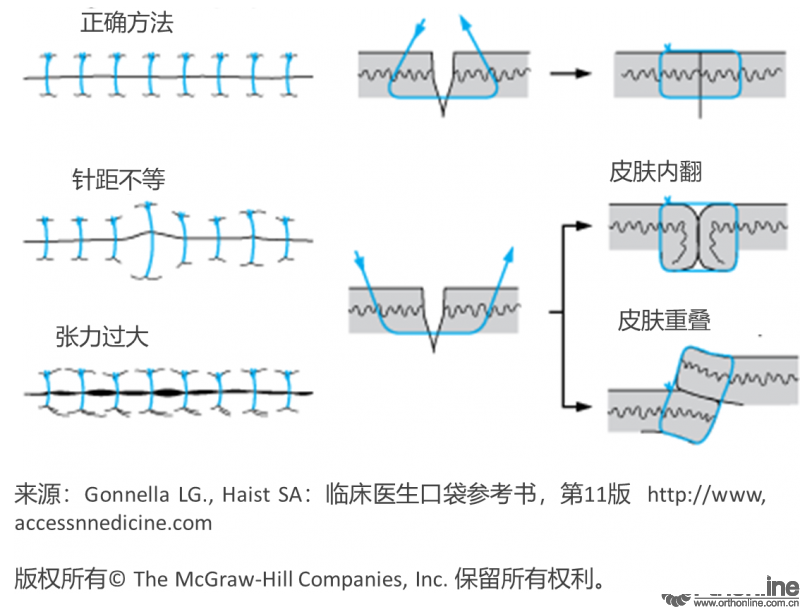 因为,切口平整虽然可以实现良好的对合,但不会产生过大的张力。随着伤口愈合,可引起轻微内翻和收缩,导致形成扁平瘢痕。在缝合过程中,皮肤边缘卷曲,趋于进一步内翻,可导致愈合不良和外观不佳。