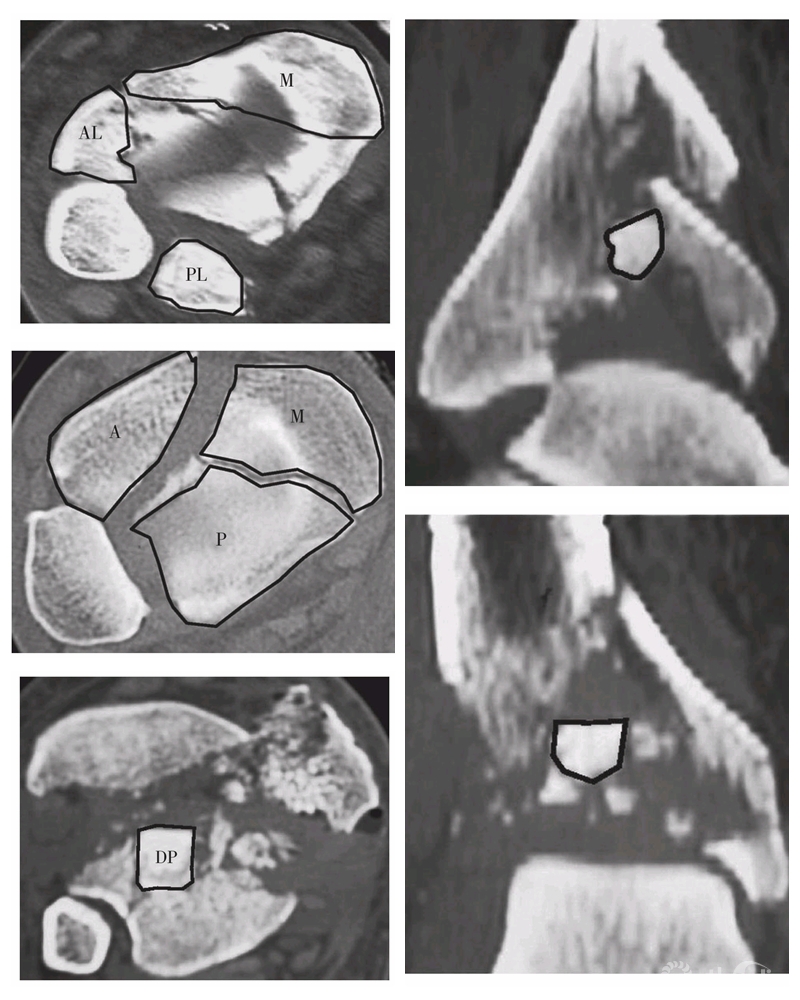AL:前外侧骨块;M:内侧骨块;PL:后外侧骨块;A:前侧骨块;P:后侧骨块;DP:Die-punch骨块