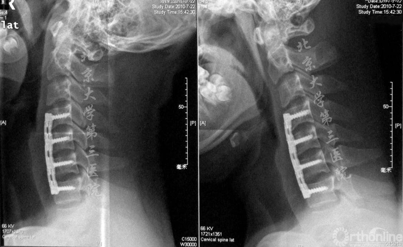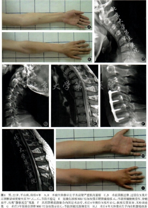 平山病的治疗通过颈托来限制颈椎的屈曲活动,但是部分患者佩戴颈托后病情仍在加重,对于病情加重的患者国内和国际均没有好的治疗办法。而骨科有丰富的颈椎手术经验,颈椎前路内固定手术可以很好的限制颈椎的屈曲活动。对于神经内科确诊为平山病经严格颈托保守治疗6个月无效的平山病患者,北医三院骨科从2006年开始采用颈椎前路钛板内固定术的手术治疗方法。