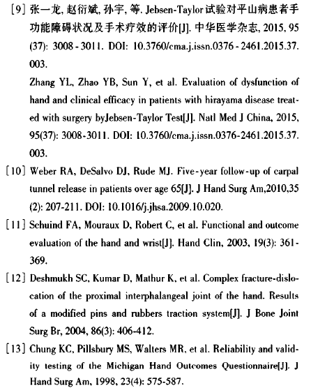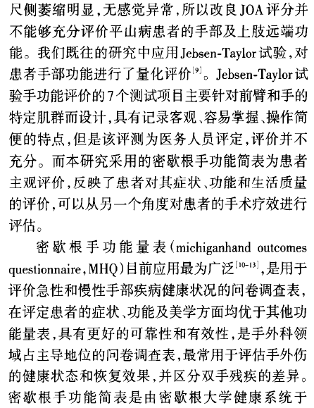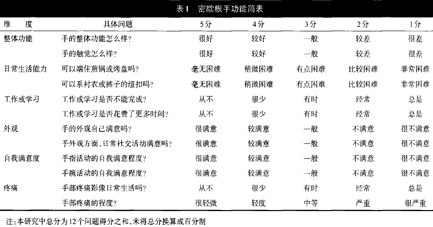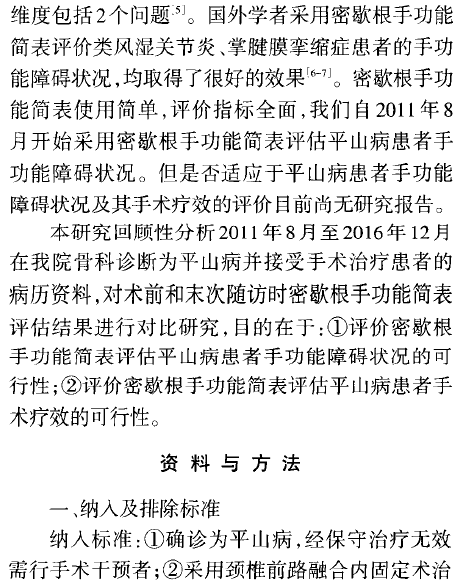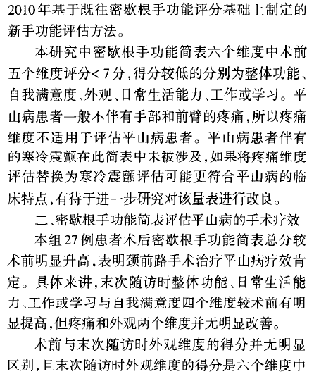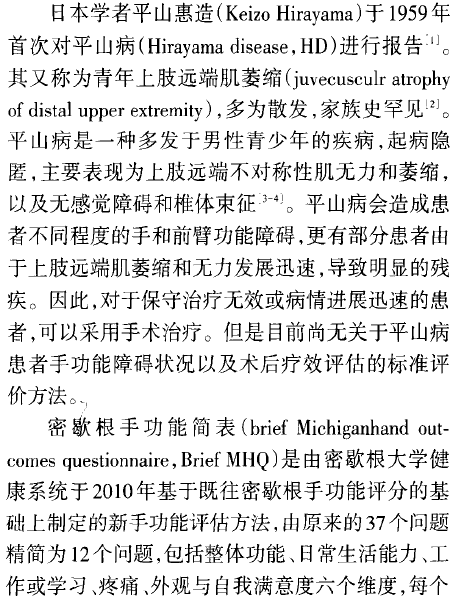密歇根手功能简表评估平山病患者手功能障碍状况的研究