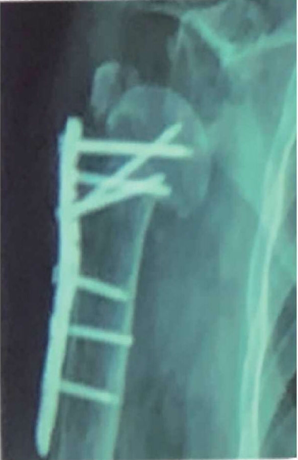 图1 骨近端骨折术后不愈合、肱骨头内翻