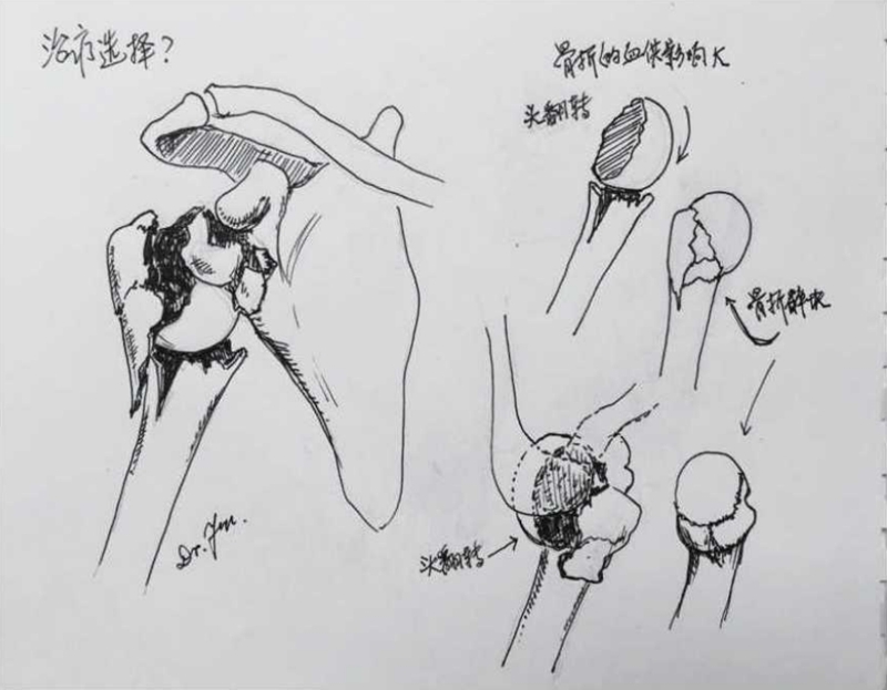 图10 手绘设计图分析肱骨近端骨折治疗方式的选择因素