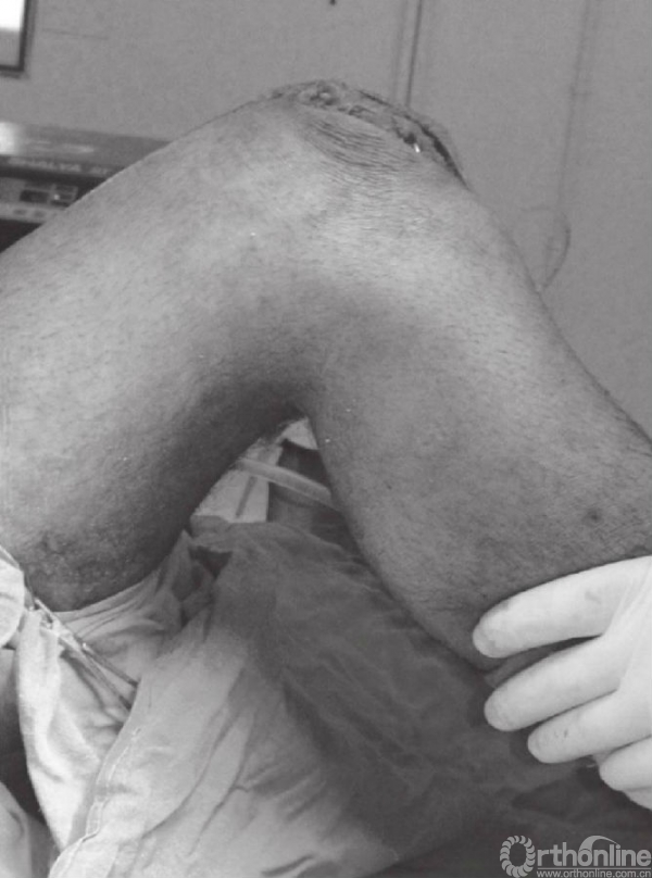 图2 患肢置于平卧位暴露大腿中段到小腿中段