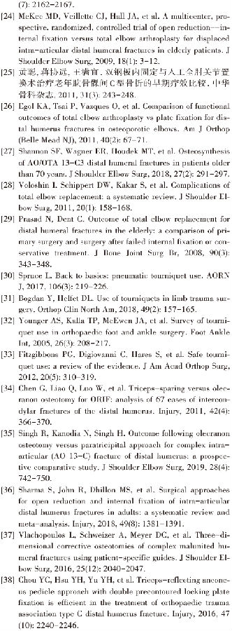 识,为医务人员在治疗此类骨折时提供指导。该共识适用于需采用手术治疗的新鲜、闭合肱骨髁间骨折患者。