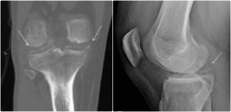 多发于儿童和青少年,其特点是在关节旁的软组织内,形成大的无痛性钙化肿块,肘关节和髋关节是其最常见的部位,膝关节少见。血清钙通常正常,血磷酸盐增高,血清二羟基维生素D水平升高。