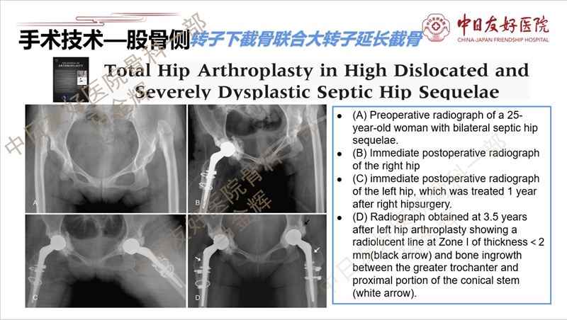 50岁中年女性,右髋关节跛行伴活动受限30余年,既往3岁时因右髋关节化脓性关节炎行反复清创、引流3次;