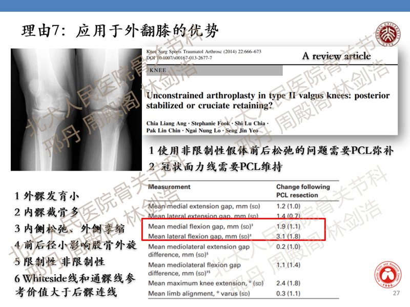 以前关注后方磨损,后来后方设计变薄弱,就可以减轻后方压力,同时促进股骨前移,因此rollback是不连续的ACL缺失导致伸直位后方接触;PCL缺失导致股骨向前移位。