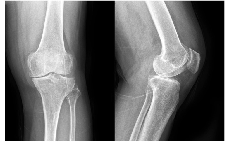 图1术前 X线片示内侧间隙呈骨对骨改变