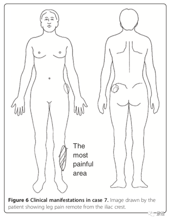 有50%的SCN异常患者,会有腰背痛及小腿外侧牵涉痛症状。查体发现髂后上棘旁4.5cm及正中线旁开7cm的髂嵴处有明显压痛。