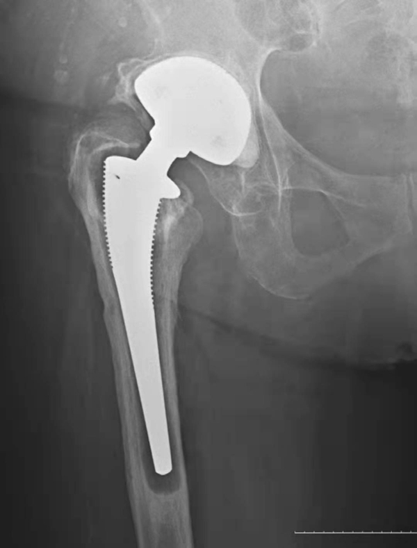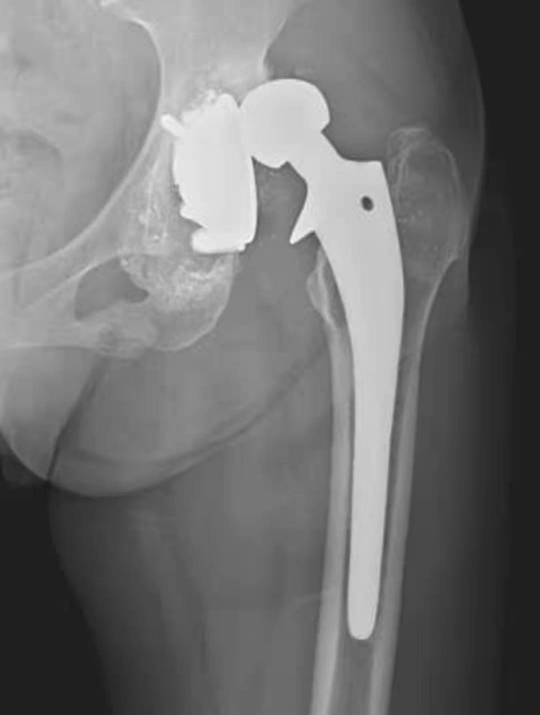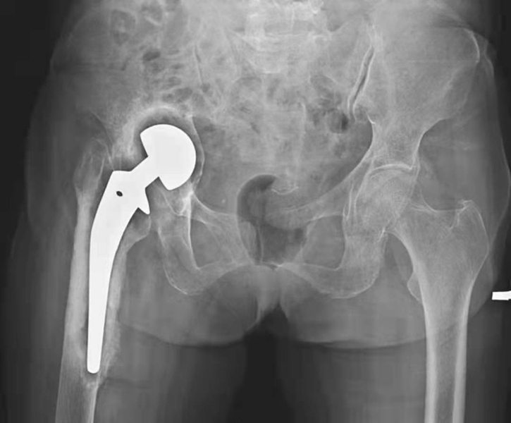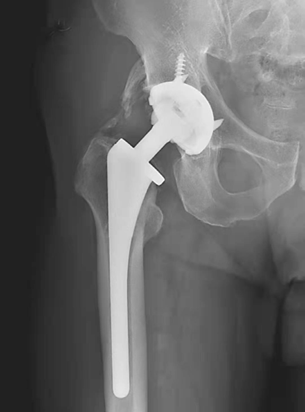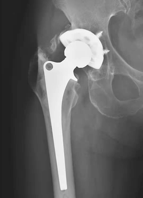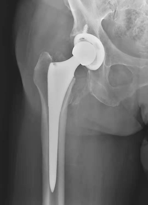 图1 人工髋关节置换术后正常X线表现