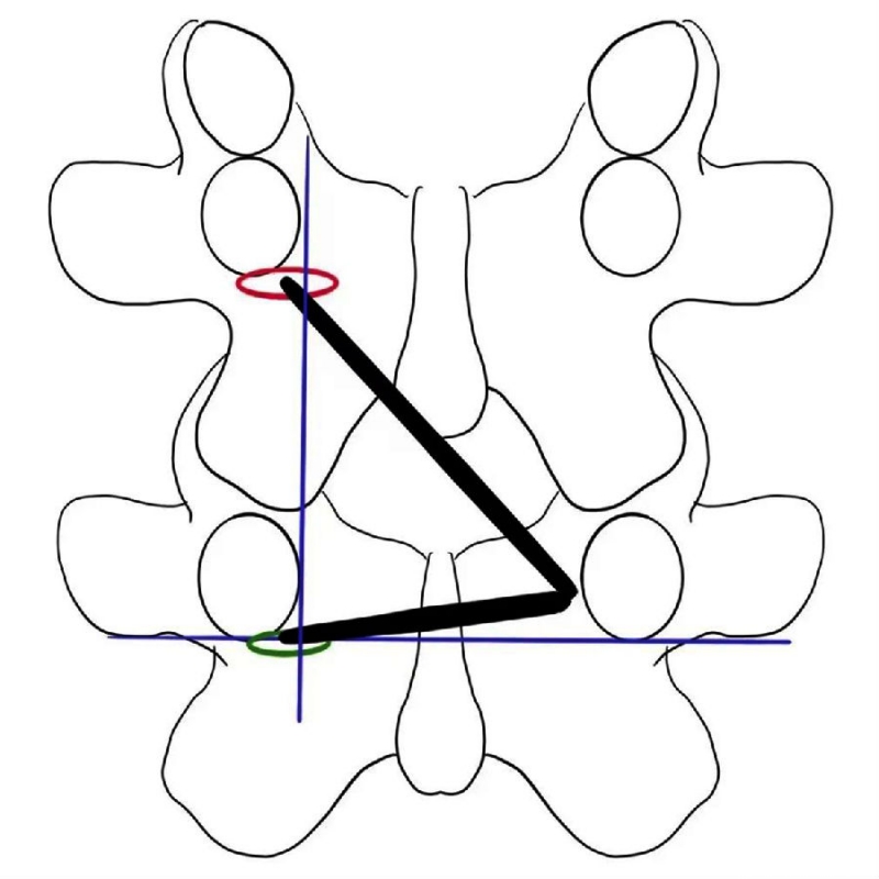 translamina入路操作口的位置非常重要,最好位于对侧下位椎体椎弓根下缘水平,内镜口也随之向远端移位。