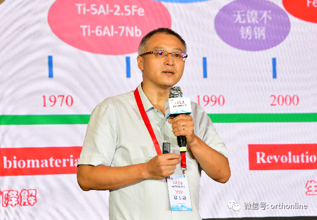 北京大学材料科学与工程学院郑玉峰教授分享了3D打印技术在骨科的应用,从骨科植入物用金属材料的发展历史出发,提出自己对二十一世纪医用金属植入物材料发展趋势的看法。在生物材料的适配上,他强调,生物材料于精准医学,不仅仅单纯生物适配,应有精准的适配性,在时间、空间上和成骨的微环境以及骨的修复过程有着很好的匹配。“材料是为医学服务的”,他提到,并对可降解金属材料在骨科领域的应用进行了回顾与展望,希望对骨科内植物新材料研发与应用有所启发。