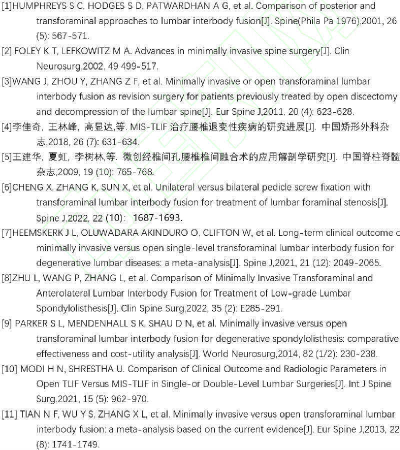 同时,MIS-TLIF在降低手术并发症发生率方面也具有一定优势。随着手术器械和技术的发展进步,MIS-TLIF存在的手术视野受限、学习曲线陡峭、射线暴露多等问题有望逐步得到改善。