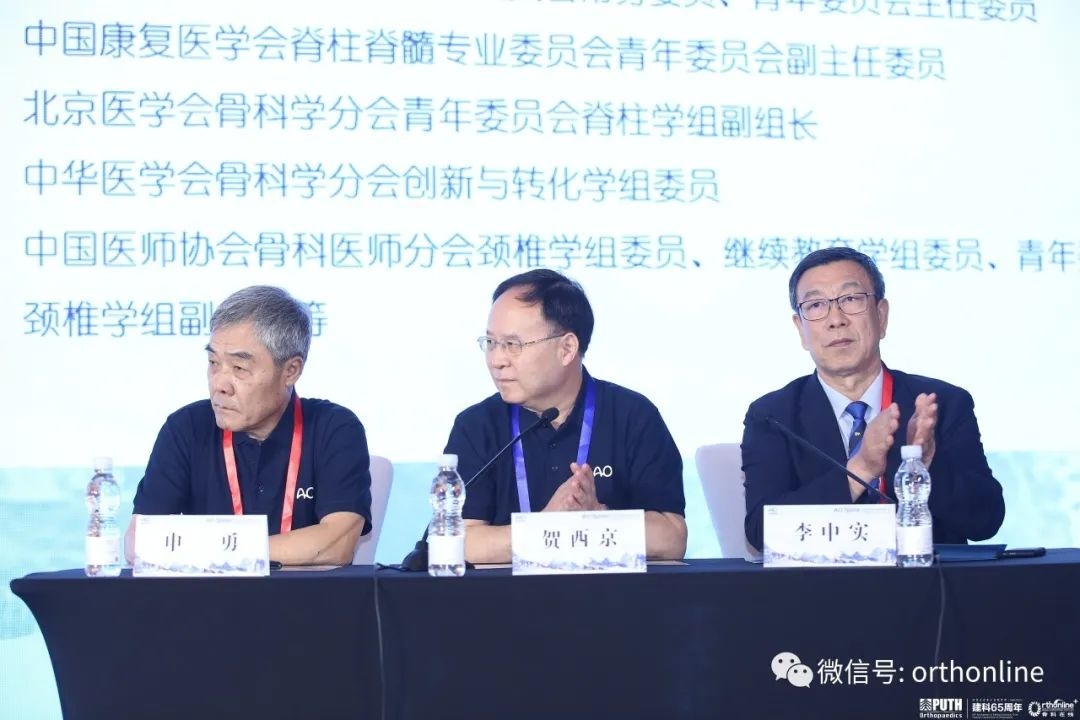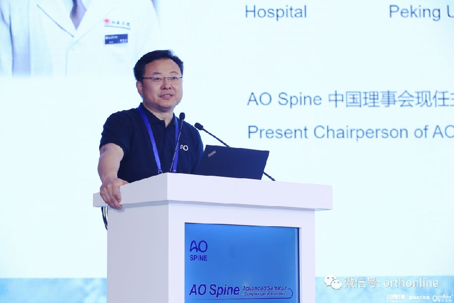 AO Spine中国理事会现任主席、北京大学第三医院李危石教授对参加本次活动的专家、同道致以诚挚感谢和热烈欢迎,并特别介绍了7位AO Spine中国奠基人:AO Spine中国理事会第一任主席、北京大学第三医院党耕町教授,AO Spine中国理事会第一届理事、海军军医大学第二附属医院贾连顺教授,AO Spine中国理事会第二任主席、北京大学第三医院陈仲强教授,AO Spine中国理事会第三任主席、海军军医大学第二附属医院袁文教授,AO Spine中国理事会第四任主席、北京大学第三医院刘忠军教授,AO Spine中国理事会第五任主席、南京鼓楼医院邱勇教授以及AO Spine中国理事会第六任主席、空军军医大学西京医院罗卓荆教授。活动还特邀AO Spine亚太区理事会历任主席Chung Chek Wong教授及AO Spine亚太区理事会现任主席Abhay Madhusudan Nene教授出席。