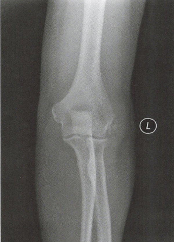 常规正、侧、轴位X线平片少有异常发现,但可以排除肘关节的合并疾病,如骨关节炎时关节后外侧旋转不稳定等。偶尔会发现钙化性腱鞘炎。