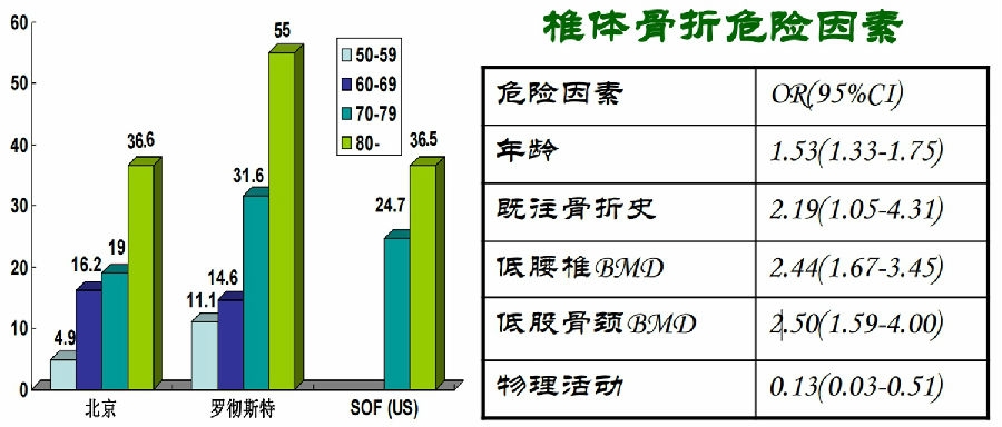 2017年,一项研究表明:影像学椎体骨折发病率随年龄增加。有13.4%的50-59岁人群发生过OVCF,58.1%的80岁以上的人群发生过OVCF。