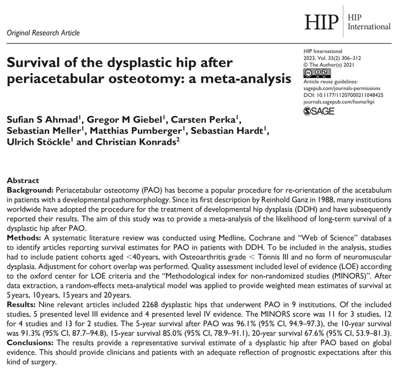 [21] AHMAD S S, GIEBEL G M, PERKA C, et al. Survival of the dysplastic hip after periacetabular osteotomy: a meta-analysis[J]. Hip Int, 2023,33(2):306-312.