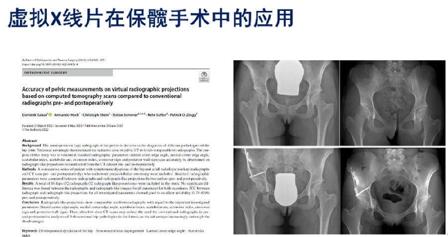 第七个大方向是:新技术在保髋手术中的应用[17,33,63,65-66]。2023年影像技术,导航等技术一如既往保持发展,但这些技术离真正在临床上广泛应用还有一段距离。