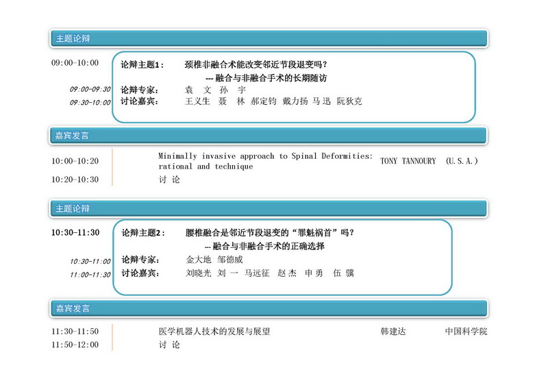 会议将邀请国内外知名脊柱外科专家进行中心发言和专题讨论,并设立热点问题辩论、疑难病例讨论专场以及继续医学教育讲座与卫星会等,就传统与微创脊柱外科技术、脊柱融合与非融合技术、脊柱畸形与脊柱肿瘤的外科治疗技术,以及数字化技术、导航技术与机器人技术在未来脊柱外科领域中的发展与应用等进行深入研讨。届时将有数百名国内外知名的脊柱外科专家云集重庆,此次会议必将对中国脊柱外科事业的进步与发展产生重要的意义和深远的影响。