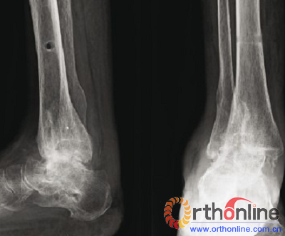 踝关节融合术在功能与力学方面的优越性使得其在踝关节创伤性关节炎的治疗过程中成为一种可行的术式。印度骨科医生Gowda等使用Charnley装置对踝关节融合术后的创伤性关节炎做临床和影像学方面的评估,研究结果表明:踝关节融合术仍是踝关节创伤性骨性关节炎救治过程中的金标准。