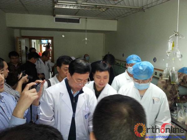 姜保国副主任询问了目前医疗队的救灾情况及他们的身体状况,对医疗队充分发挥自身专业优势,团结协作、齐心协力、卓有成效开展伤员救治和灾区技术帮带工作,出色完成救灾任务给予了高度赞扬。姜保国副主任还为医疗队带去了救灾工作所需无粉手套等物质。他号召队员们继续配合当地医院,积极开展工作,同时保重身体。姜保国副主任在雅安市人民医院骨科进行了查房,交待注意事项,询问了患者伤情,并祝患者早日康复。