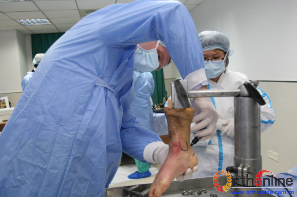 德国专家为学员进行踝关节镜手术入路的讲解
