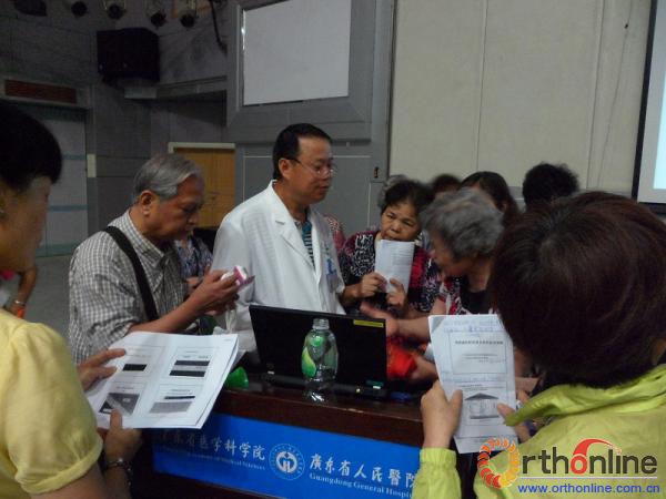 广州市第一人民医院的健康大讲堂活动由创伤骨科主任张光明教授带领专家组进行,有100多位市民参与了义诊活动。通过专家组精彩的骨质疏松专题演讲,普及了防治骨质疏松症的健康知识。在讲座结束后,专家组还提供了50个名额的免费骨密度检查,并现场进行答疑。