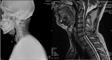 患者,男性,49岁,主因“行走不稳2个月伴右前臂麻木1个月”入院 2月前开始出现双下肢行走不稳,有踩棉花感,行走距离受限。1月前出现右侧前臂及手指麻木感。3周前诊断为“颈椎病”,保守治疗无改善,行走不稳症状加重