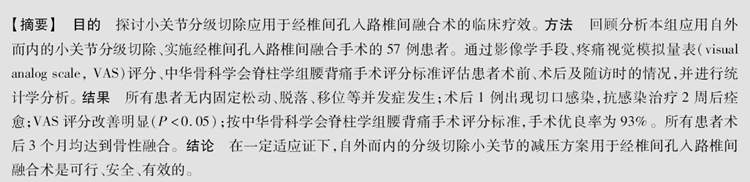 小关节分级切除在经椎间孔入路椎间融合术的临床应用